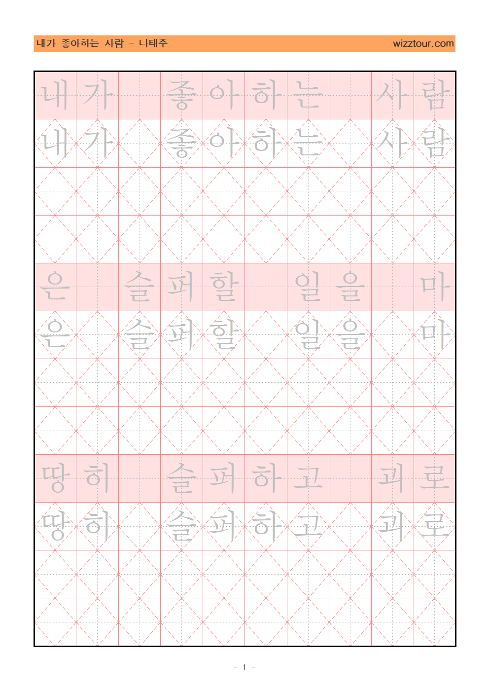[내가 좋아하는 사람] 펜글씨 교정 교본 PDF